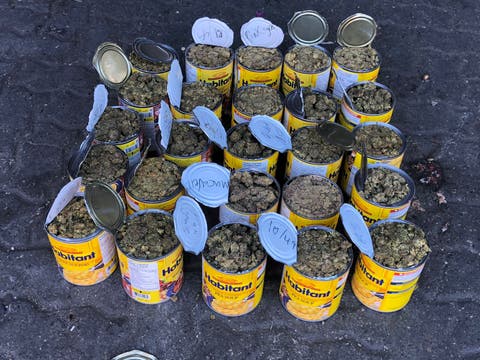 Posteriormente, en presencia de un fiscal adjunto, se procedió abrir el tanque, encontrando en su interior 25 latas de sopa llenas de marihuana.