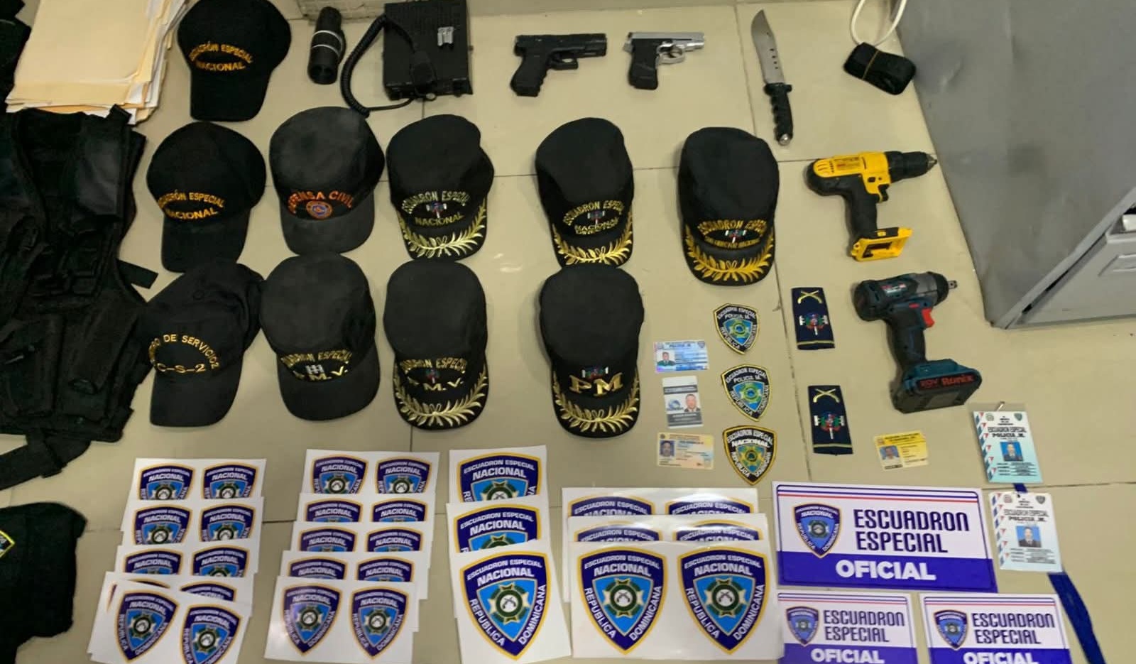Entre los objetos ocupados figuran un chaleco multiuso negro con la leyenda «Escuadrón Especial» en la espalda; diez gorras con distintas insignias —todas con la misma leyenda—; una gorra de la Defensa Civil; otra identificada como «C-S-2»; tres camisetas del citado “Escuadrón Especial”; dos chaquetas con logo de Policía Municipal; un chaleco de camuflaje; dos hombreras con rango de coronel y cuatro placas de identificación con rango de oficial del supuesto escuadrón.