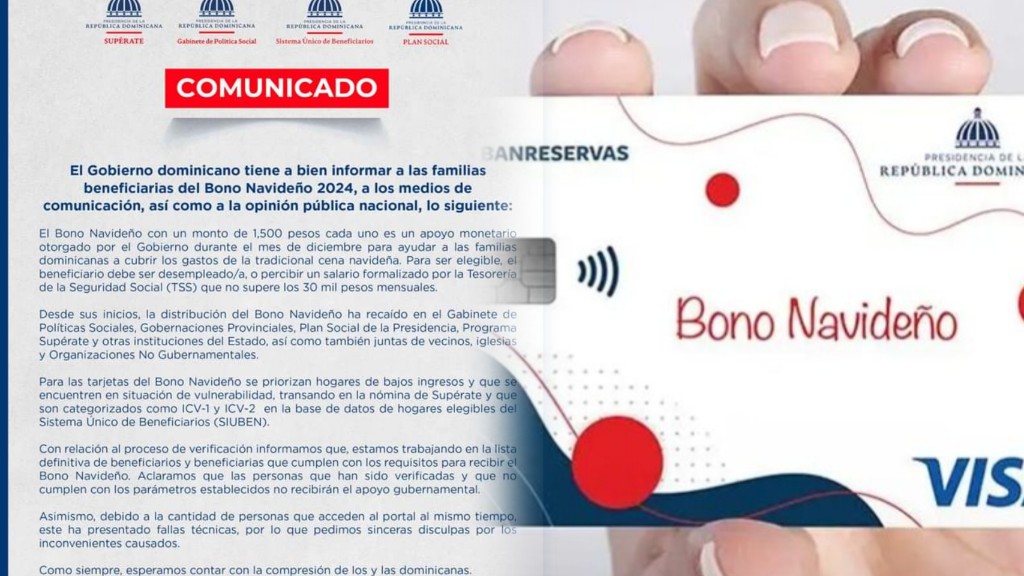 El Gobierno dominicano informó este lunes que está revisando la lista definitiva de beneficiarios del Bono Navideño, tras denuncias de que algunas personas aparecen como beneficiarias sin cumplir con los requisitos establecidos.
