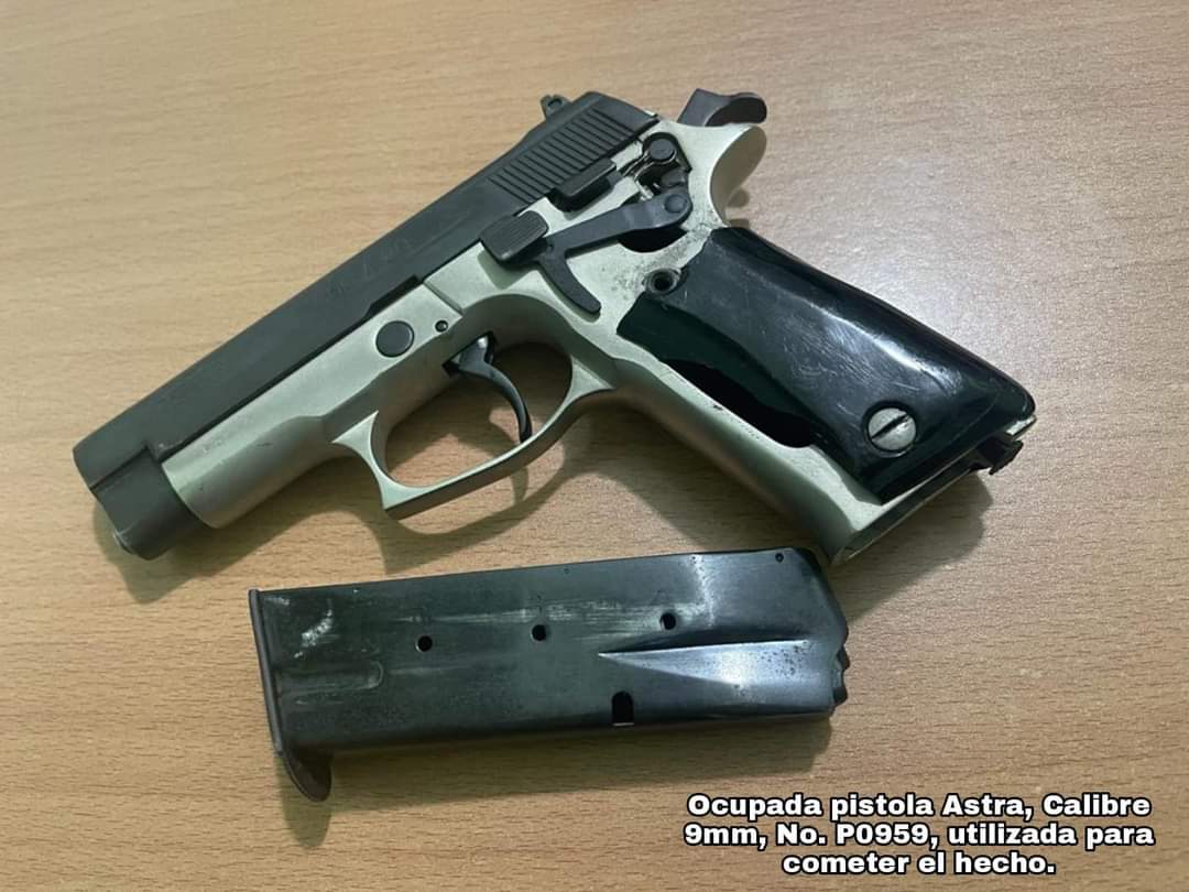 Su captura se produjo en atención a la orden de arresto 973-2021-EMES-12276, ocupándole posteriormente la pistola Astra, calibre 9 milímetros, número P0959, con su cargador, la cual fue utilizada para cometer el hecho.